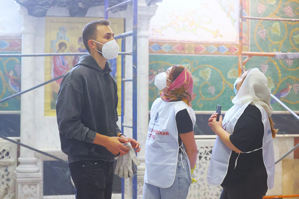 ‒ Я совсем недавно работаю в компании, и когда узнал про такую возможность сделать доброе дело, то сразу согласился, ‒ сказал Константин Дмитриевич Старцев, волонтёр «Союза Маринс Групп». ‒ Несмотря на работы храм уже открыт для прихожан, сюда заходят и туристические группы, и, конечно, очень хочется, чтобы люди приходили и видели всё это великолепие в чистоте, чтобы приятно было помолиться, поставить свечи. Я сам впервые был в этом храме, знаю, что наша компания участвует в его воссоздании, и хотелось также внести свой посильный вклад.