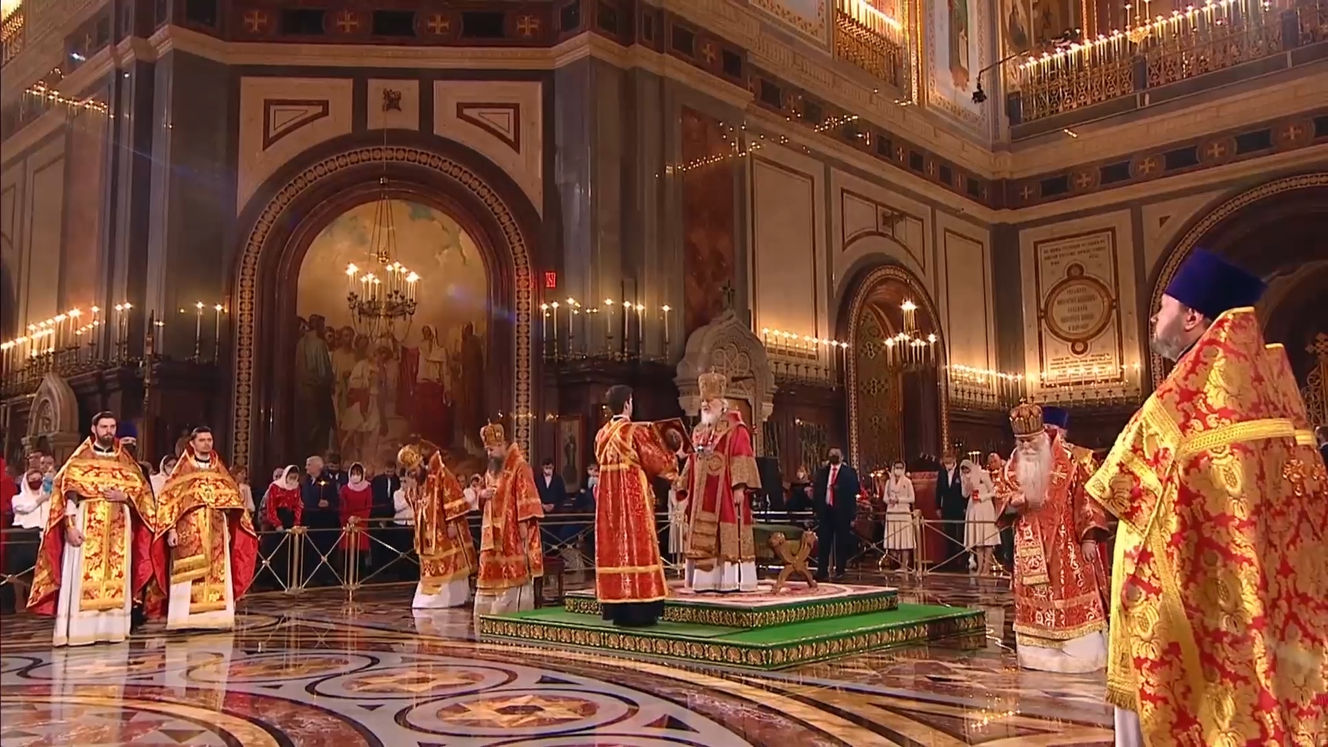 Перед началом богослужения Предстоятель Русской Православной Церкви в прямом эфире поздравил зрителей трансляции с праздником Светлого Христова Воскресения: «Сегодня мы слышим шум — шум от наполняющего храм народа, и радуется сердце. Что—то все—таки произошло за этот год, несмотря на то, что угроза заражения вирусной инфекцией еще остается, она постепенно отступает под натиском общих усилий — и врачей, и властей, и каждого из нас, кто научился жить во время пандемии и кто использует все необходимые средства для личной защиты и защиты своих ближних.