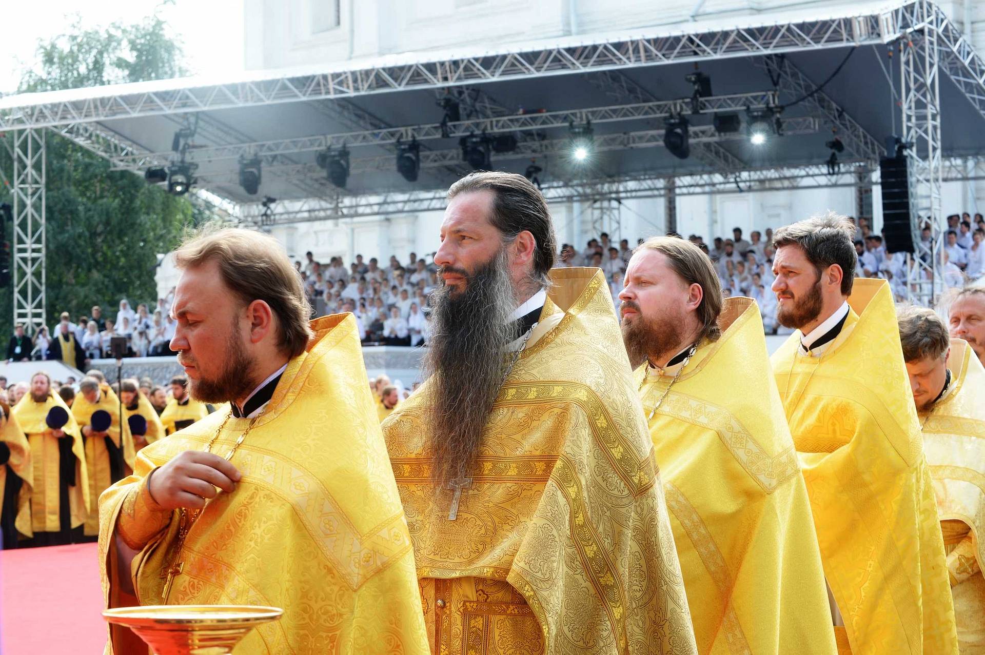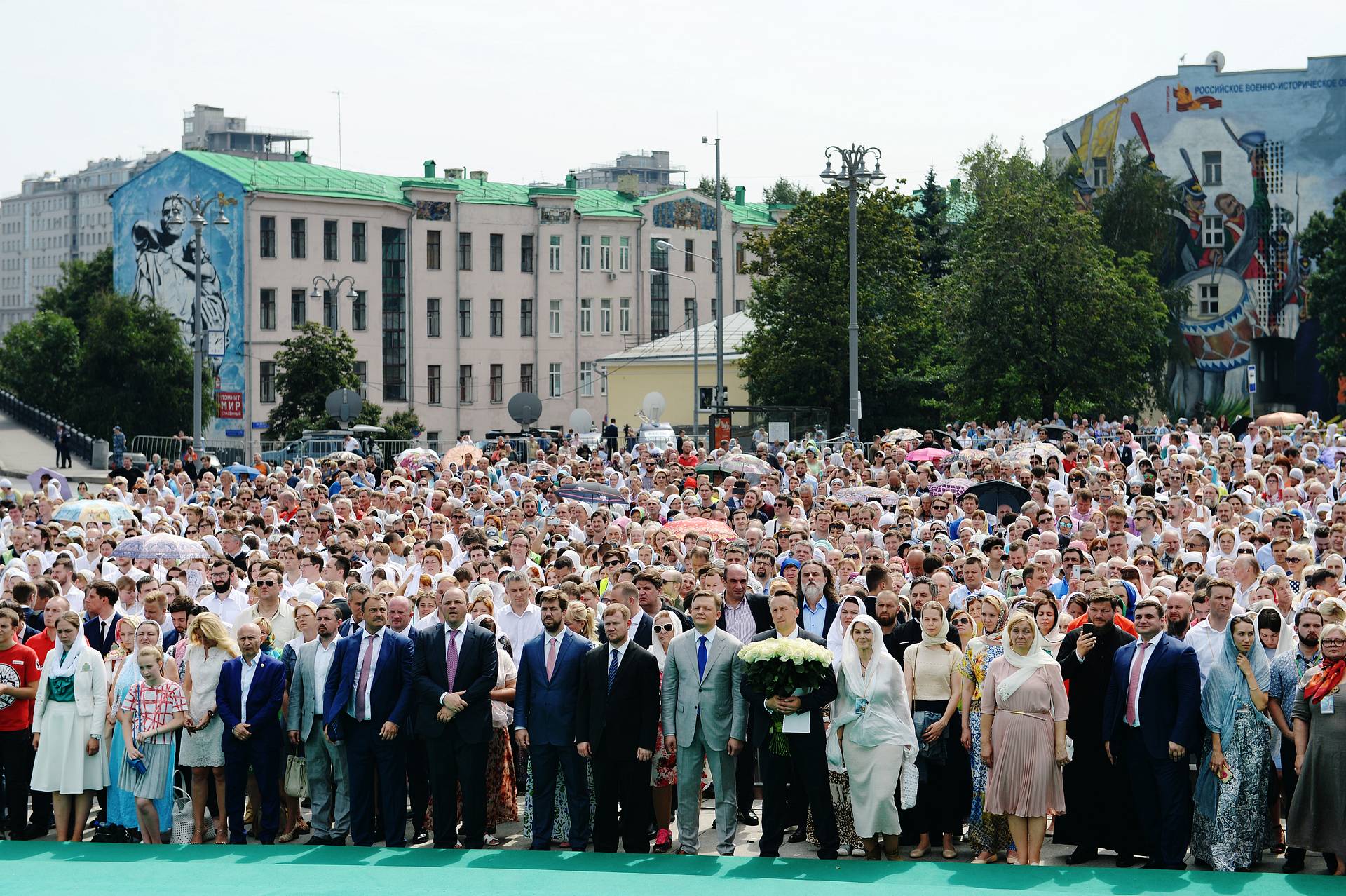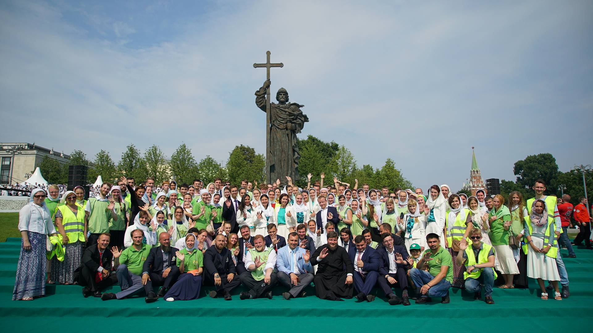 Для проведения Патриаршей службы на Соборной площади Кремля были установлены икона и ковчег с частицей мощей святого равноапостольного великого князя Владимира, принесенный из кафедрального соборного Храма Христа Спасителя. Богослужебные песнопения исполнил сводный хор Московской городской епархии под управлением заслуженного артиста России А.А. Пузакова. Помощь в проведении торжественного мероприятия оказала православная молодежь Московской городской епархии, движения «Православные добровольцы» и волонтерского отряда кинокомпании «Союз Маринс Групп».