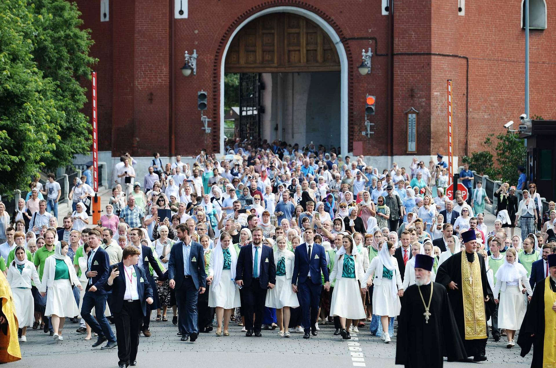 По завершению Литургии состоялся крестный ход через Боровицкие ворота Кремля к памятнику святому равноапостольному великому князю Владимиру. Крестный ход возглавили Блаженнейший Папа и Патриарх Александрийский и всей Африки Феодор II и Святейший Патриарх Московский и всея Руси Кирилл. В шествии принял участие Президент Российской Федерации В.В. Путин.