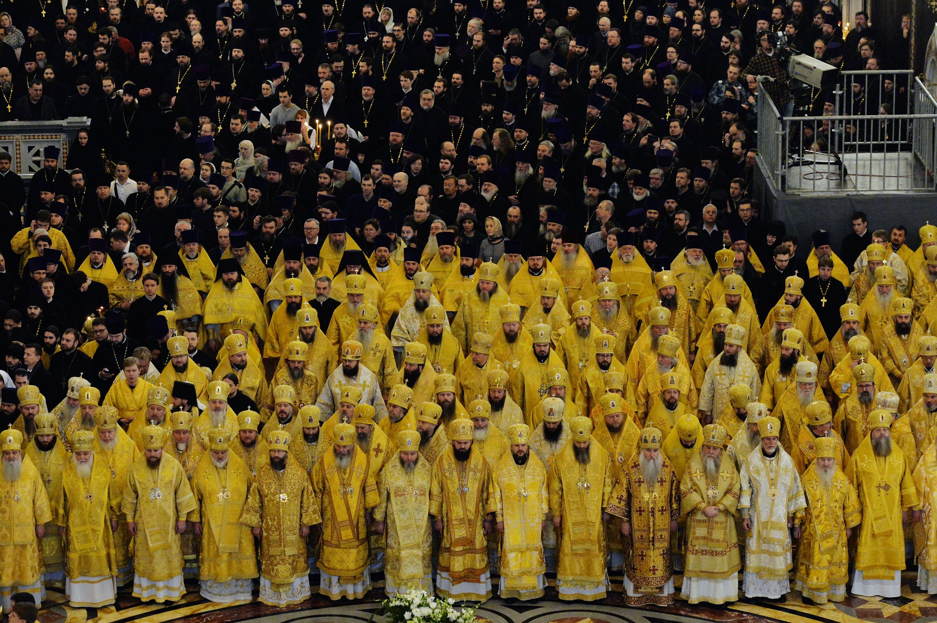 Богослужение возглавили: Блаженнейший Патриарх Антиохийский и всего Востока Иоанн X, Святейший Патриарх Московский и всея Руси Кирилл, Святейший Патриарх Сербский Ириней, Блаженнейший Митрополит Чешских земель и Словакии Ростислав, Блаженнейший Митрополит всей Америки и Канады Тихон. Предстоятелям сослужили постоянные члены Священного Синода Русской Православной Церкви, главы и члены делегаций Поместных Православных Церквей.