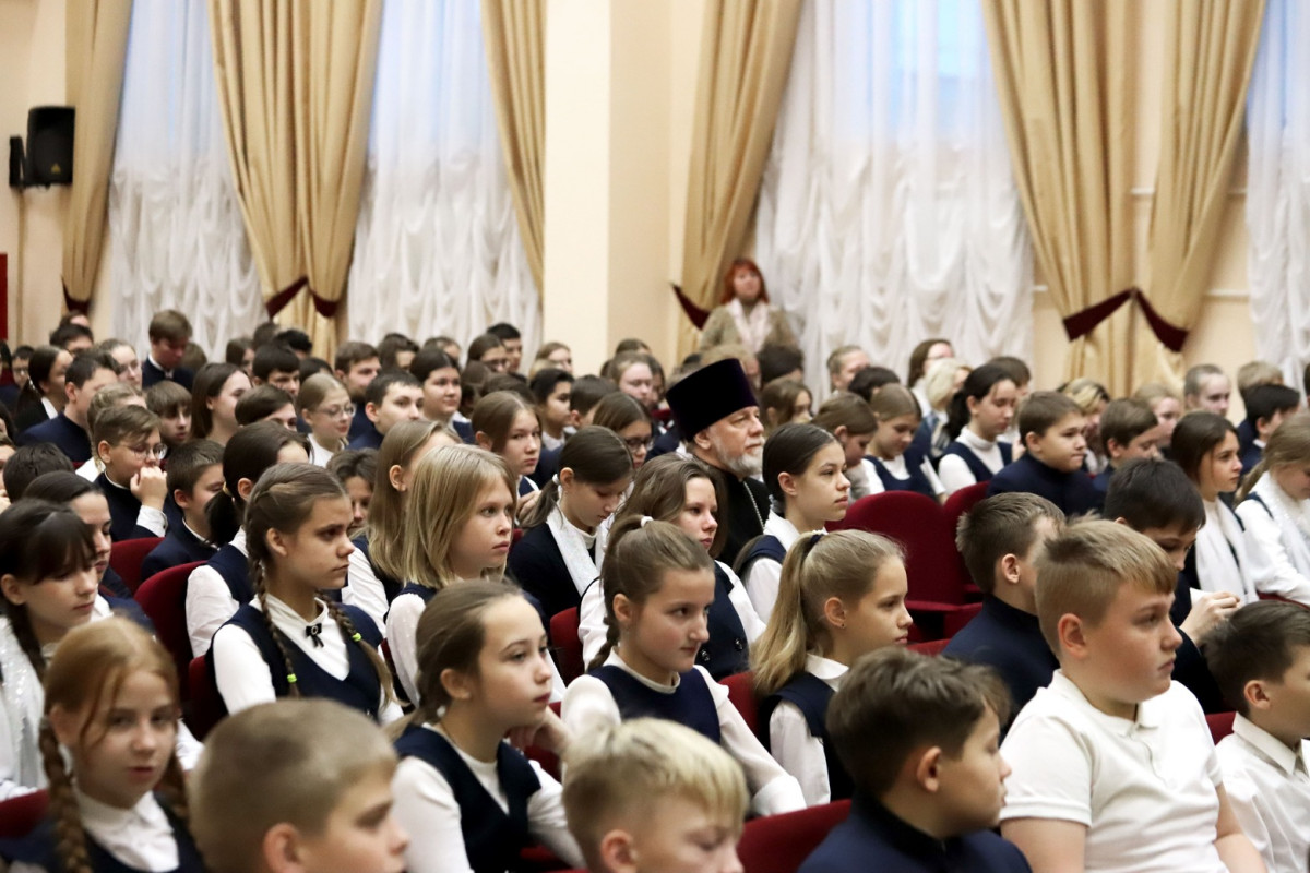 Для участия в беседе с боевым генералом ученики собрались в актовом зале гимназии, где также присутствовали руководитель отдела образования и катехизации Нижегородской епархии протоиерей Евгений Худин, директор школы Людмила Иванова, преподаватели нижегородской православной гимназии имени святого благоверного князя Александра Невского. Подобные встречи для гимназистов проводятся в рамках общероссийского образовательного проекта «Разговоры о важном», где затрагиваются темы, связанные с наиболее актуальными аспектами жизни человека в современной России.
