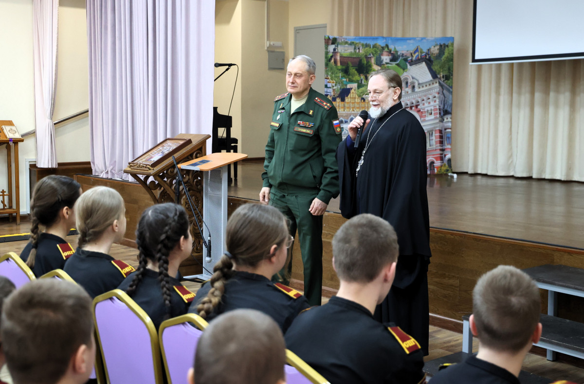 ‒ Дети сегодняшнего времени очень информированы. Перед встречей они самостоятельно познакомились с профессией нашего гостя. Но из первых уст услышать и о военной службе, и о профессии медика для них было очень важным и интересным, ‒ сказал протоиерей Евгений Худин, член Епархиального совета, руководитель отдела образования и катехизации Нижегородской епархии, директор православной гимназии имени святого апостола и евангелиста Иоанна Богослова. ‒ Значение военной службы для государства в любое время имеет непреходящее значение. Военнослужащие – это оплот нашей надежды, авангард дисциплинированности и ответственного служения Отечеству. Мы благодарим Олега Ивановича и компанию «Союз Маринс Групп» за инициативу проведения этой познавательной встречи, за то, что дети из первых уст услышали об особенностях такого служения Родине.