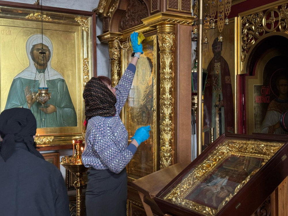Добровольцы занимались уборкой храмовых помещений, протирали иконы и церковную утварь, иконостас, мыли окна и полы, чистили дорожки, просеивали муку, перебирали вещи, выкорчевывали старые засохшие кустарники, набирали воду в ёмкости, – работы хватило всем. Каждый как мог старался внести свой вклад в общее дело, проявив ответственность и усердие. Трудились весь световой день. Но с послушанием, которое определила для добровольцев матушка Ефросинья, справились.